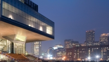 A see through building ?This building almost becomes a piece of scuplture through its use of glass.